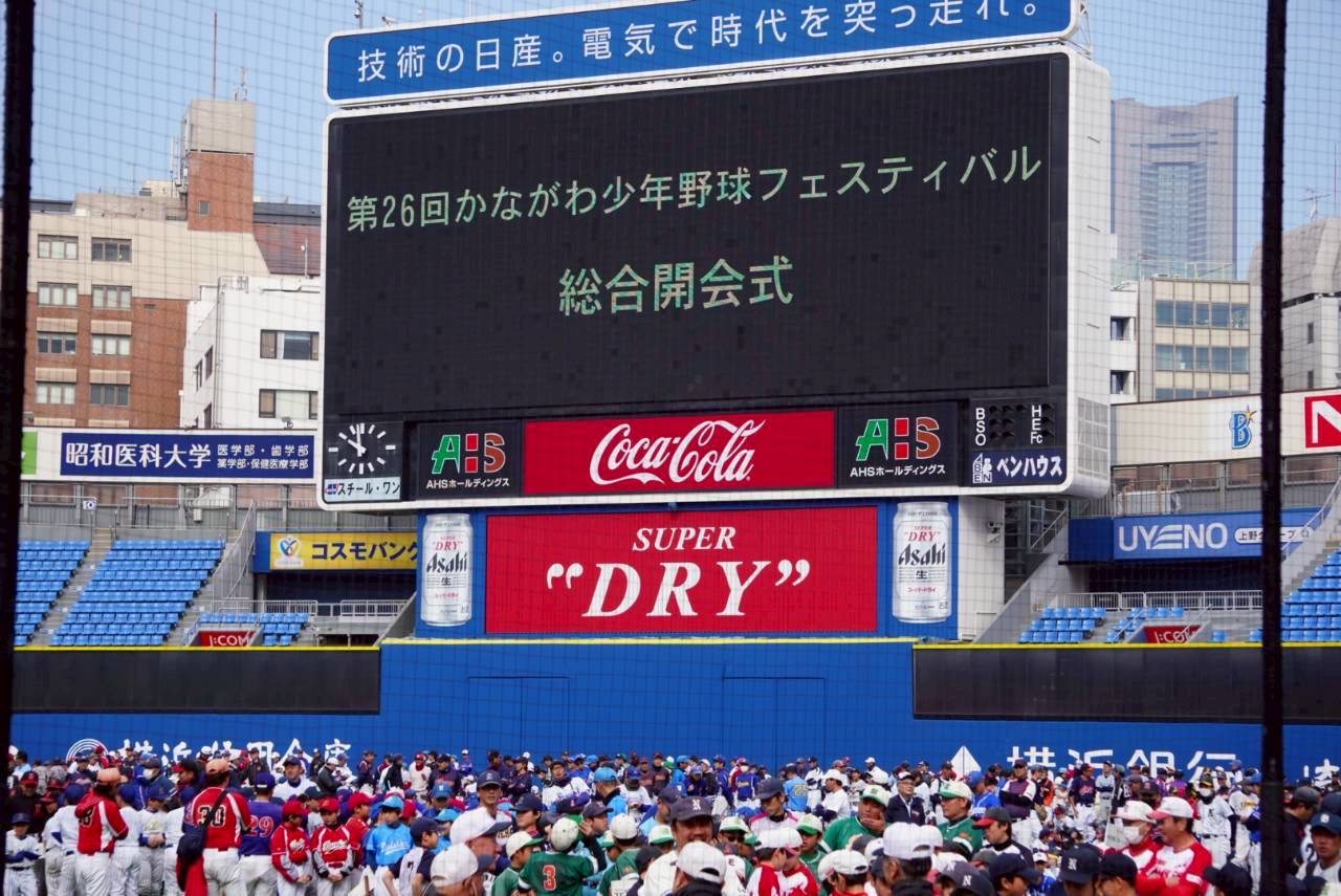 横浜スタジアムで少年野球フェスに参加